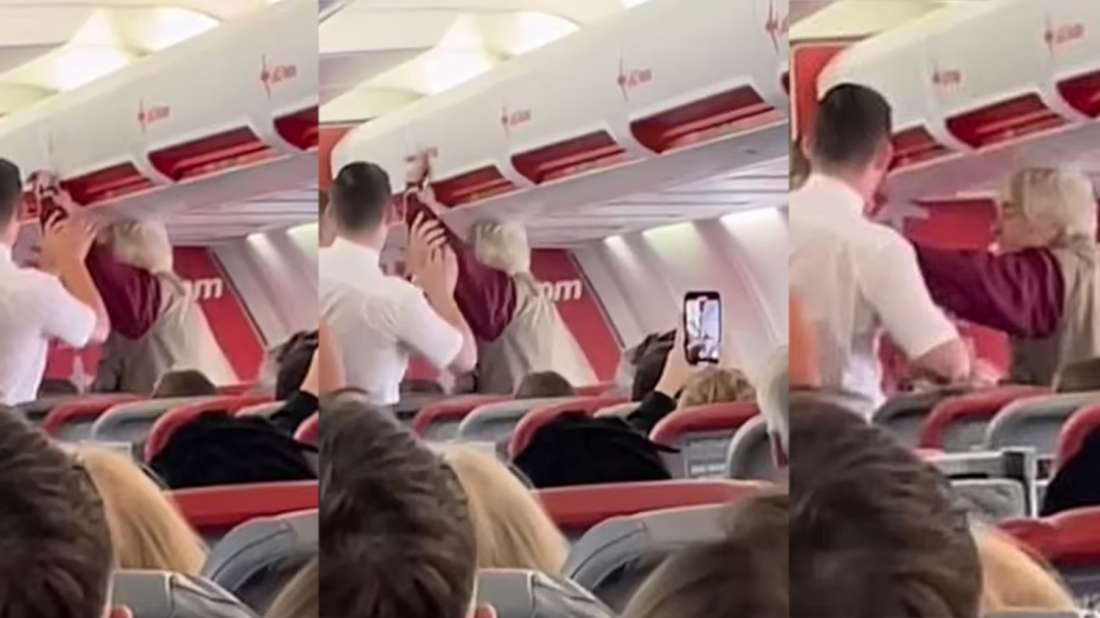 Σύμφωνα με την DailyMail η γυναίκα έγινε επιθετική και χτύπησε τον αεροσυνοδό όταν εκείνος επιχείρησε να της πάρει το ποτό που έπινε και σύμφωνα με τους άλλους επιβάτες την είχε «χτυπήσει». Στο βίντεο που ήρθε στη δημοσιότητα φαίνεται ο άνδρας του προσωπικού του αεροπλάνου να προσπαθεί να συγκρατήσει τη γυναίκα, όμως εκείνη τον μοιάζει εκτός εαυτού και καταφέρνει να τον χτυπήσει. Ενα άλλο μέλος του προσωπικού φαίνεται να βοηθά να συγκρατήσει τη γυναίκα που πέφτει ξανά στο κάθισμά της πριν τελειώσει το βίντεο.