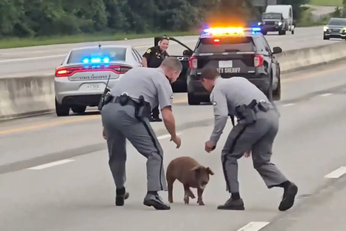 Δύο μέλη της Αστυνομίας Αυτοκινητοδρόμων της Νότιας Καρολίνας συνεργάστηκαν για να πιάσουν το γουρουνάκι που προσπάθησε να το σκάσει την περασμένη Παρασκευή.