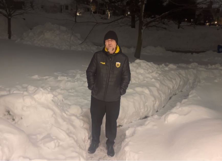 Μιλώντας για το Μπάφαλο ανέφερε ότι είναι μια περιοχή που είαι γνωστή για το κρύο και το χιόνι. Ερωτηθείς για την ελληνική κοινότητα που υπάρχει στην περιοχή απάντησε ότι όλοι είναι καλά. «Έχουμε κάποιους ηλικιωμένους που είναι μόνοι στα σπίτια τους, αλλά τους κοιτάξαμε όλους. Όλοι είμαστε καλά», συμπλήρωσε.