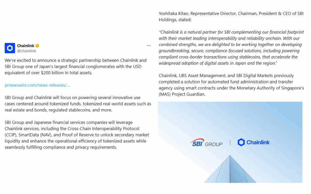 Αξίζει να σημειωθεί ότι η συνεργασία με την Chainlink έρχεται λίγες μέρες μετά από αντίστοιχες συμφωνίες της SBI με τη Circle (USDC), τη Ripple Labs (Ripple USD stablecoin) και τη Startale, που θα δημιουργήσει πλατφόρμα συναλλαγών για tokenized μετοχές και RWAs. Η στρατηγική της SBI δείχνει πως τα μεγάλα brands του χρηματοπιστωτικού τομέα βλέπουν τα crypto όχι πλέον ως κάτι πειραματισμό, αλλά ως απαραίτητο εργαλείο για τη νέα εποχή του trading.
