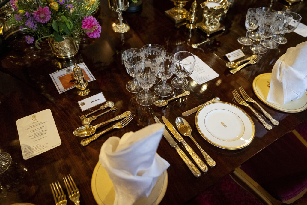 Το κάστρο του Windsor άνοιξε τις πύλες του, την Τετάρτη το βράδυ, και η βρετανική βασιλική οικογένεια υποδέχτηκε τον Ντόναλντ και τη Μελάνια Τραμπ, όπως και 150 καλεσμένους. Αίσθηση, μεταξύ άλλων, προκάλεσε το εντυπωσιακό τραπέζι με τα 1.452 μαχαιροπίρουνα. «Το προσωπικό με τις περίτεχνες στολές είναι εκπαιδευμένο με στρατιωτική πειθαρχία. Το στρώσιμο του τραπεζιού, με πέντε ποτήρια ανά άτομο, είναι τόσο ακριβές που προκαλεί δέος», έγραψε το BBC