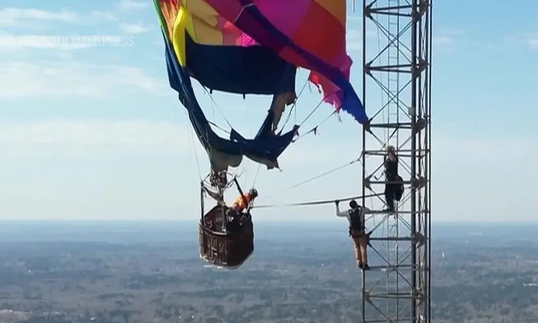 Σύμφωνα με τον Patrick, «το καλάθι κρεμόταν από μια κλωστή». Ο Winchell επισήμανε ότι οι διασώστες έπρεπε να λάβουν υπόψη ανέμους 15 έως 30 χλμ την ώρα, με ριπές έως και 35 χλμ, γεγονός που δυσχέραινε την επιχείρηση. Οι πυροσβέστες χρειάστηκαν πάνω από μία ώρα για να αναρριχηθούν στον πύργο και να προσεγγίσουν το καλάθι του αερόστατου, το οποίο είχε σφηνώσει στην κατασκευή. Στην πράξη η ομάδα προχώρησε σε σταδιακή προσέγγιση: ανέβηκαν κατά τμήματα, στερέωσαν ενδιάμεσα σημεία για ασφάλεια και αξιοποίησαν διαρκή επικοινωνία με το σημείο εδάφους για συντονισμό κινήσεων. Αφού έφτασαν στο ύψος του αερόστατου, διαπίστωσαν ότι ο ένας επιβάτης στεκόταν όρθιος και ο άλλος καθόταν μέσα στο καλάθι. Αρχικά στερέωσαν το καλάθι στον πύργο με σχοινιά και στη συνέχεια προέβησαν στην ασφαλή κατάβαση των δύο ανδρών με ιμάντες, εφαρμόζοντας πρωτόκολλα ασφαλείας για αποφυγή περαιτέρω κινδύνου, ενώ την όλη επιχείρηση κατέγραψε κάμερα από drone. Κατά την προσέγγιση οι πυροσβέστες διατηρούσαν επικοινωνία με τους δύο επιβάτες για να εκτιμήσουν την κατάστασή τους και να τους καθοδηγήσουν πριν από την τοποθέτηση στους ιμάντες. Η όλη διαδικασία απαιτούσε υπομονή και ακρίβεια, καθώς κάθε κίνηση μπορούσε να αλλάξει τη θέση του καλάθιου και να θέσει σε κίνδυνο την ασφάλεια.