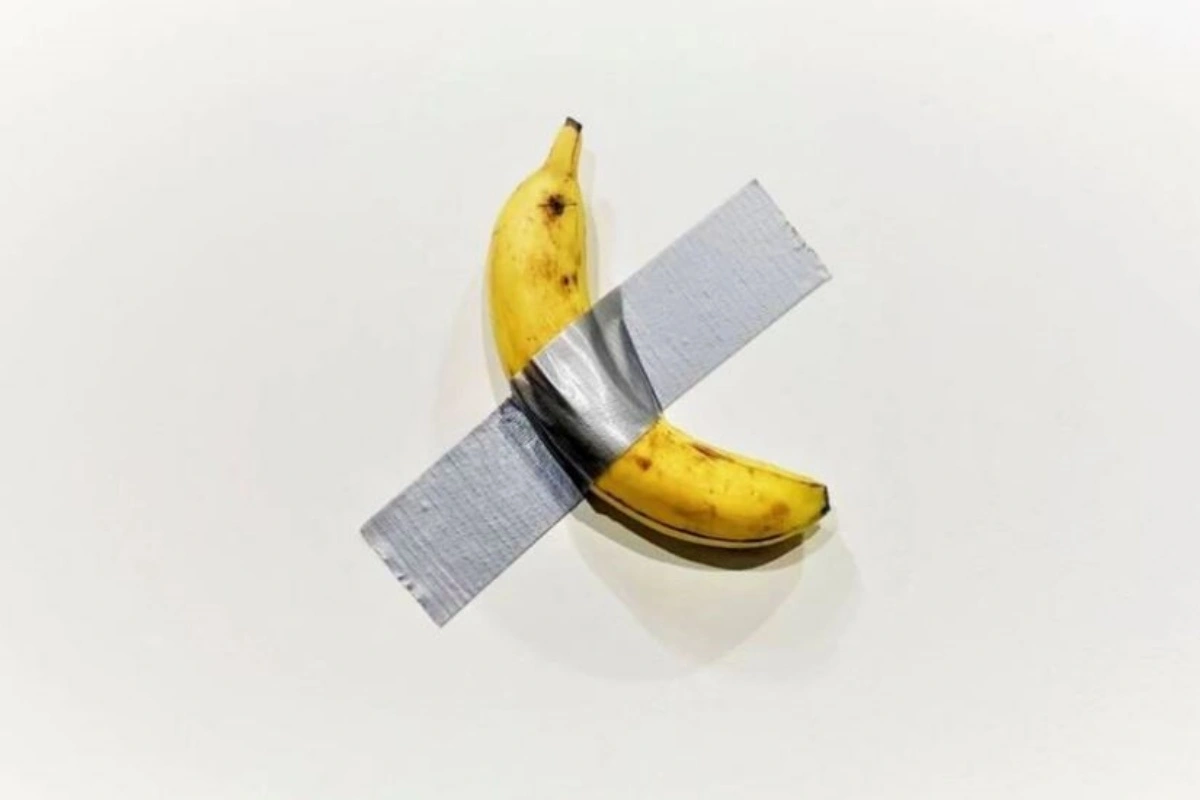 Το έργο αποτελείται από μια μπανάνα κολλημένη σε ένα τοίχο με ένα χοντρό κομμάτι ασημί ταινίας. Τιτλοφορείται «Comedian» και δημιουργήθηκε από τον εικονοκλάστη και προβοκάτορα ιταλό καλλιτέχνη Μαουρίτσιο Κατελάν.