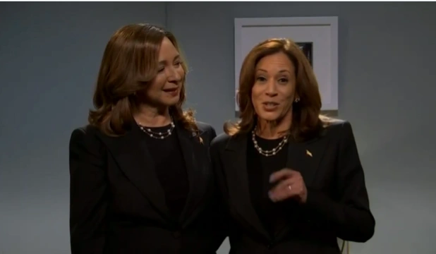 Η υποψήφια πρόεδρος των ΗΠΑ εμφανίστηκε στο πλευρό της ηθοποιού και κωμικού Μάγια Ρούντολφ, η οποία την έχει υποδυθεί και στο παρελθόν. Στο σκετς, η Ρούντολφ κάθεται σε ένα καμαρίνι και κοιτάζεται σε έναν καθρέφτη και λίγο αργότερα αλλάζει το πλάνο και δείχνει στην άλλη πλευρά την Χάρις με πανομοιότυπη ενδυμασία.