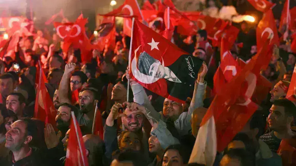 Οι υποστηρικτές του Ρεπουμπλικανικού Λαϊκού Κόμματος (CHP) στην Κωνσταντινούπολη πανηγυρίζουν μετά τις δημοτικές εκλογές σε ολόκληρη την Τουρκία αφού το κόμμα της αντιπολίτευσης σάρωσε και κατατρόπωσε τον Ερντογάν