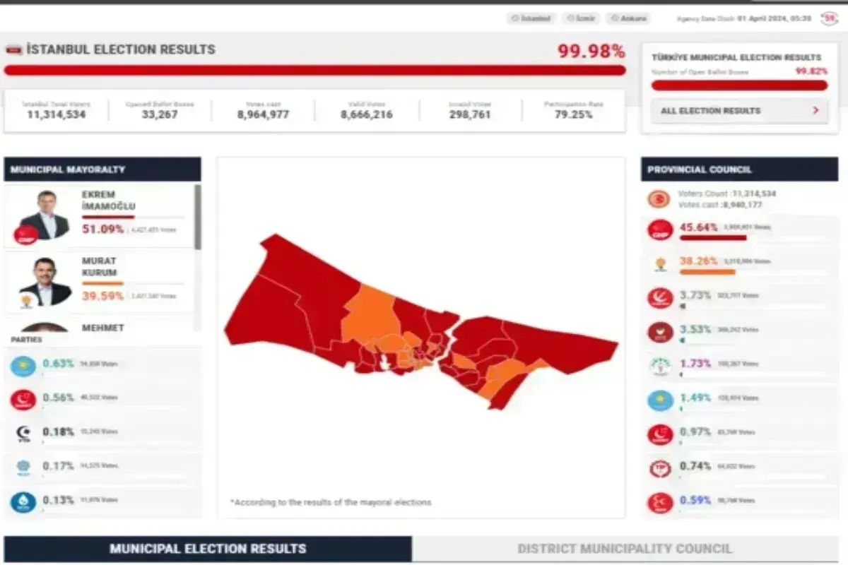 Το ενδιαφέρον, σε κάθε περίπτωση, σε αυτές τις εκλογές επικεντρώθηκε στην Κωνσταντινούπολη, καθώς η πραγματική μονομαχία δεν διεξήχθη μεταξύ του Ιμάμογλου και του Κουρούμ, αλλά μεταξύ του Ιμάμογλου με τον Ρετζέπ Ταγίπ Ερντογάν.