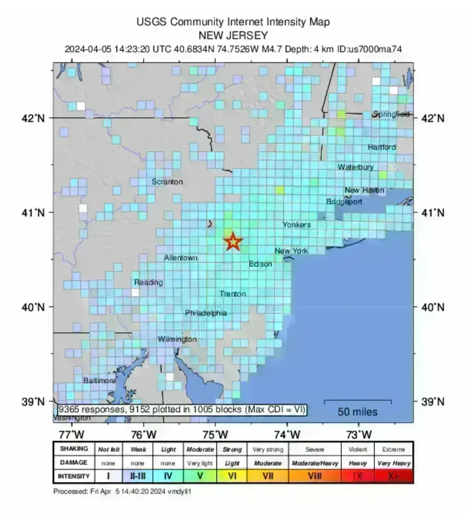Ο προκαταρκτικός σεισμός 4,8 βαθμών της κλίμακας Ρίχτερ σημειώθηκε κοντά στον Λίβανο του Νιου Τζέρσεϊ, γύρω στις 10:23 π.μ., σύμφωνα με το Γεωλογικό Ινστιτούτο των ΗΠΑ.