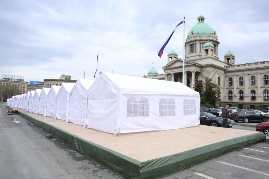 #BREAKING #Serbia A fire broke out in the tent camp near the Serbian Parliament in Belgrade.