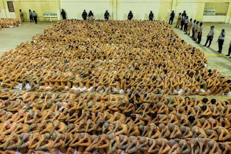 Η εν λόγω φυλακή στο Ελ Σαλβαδόρ έχει χωρητικότητα 40.000 άτομα και οι πρώτοι 2.000 κρατούμενοι που κατηγορούνται ως μέλη συμμοριών μετήχθησαν εκεί την Παρασκευή (24/2), καθώς άνοιξε τις πόρτες της.