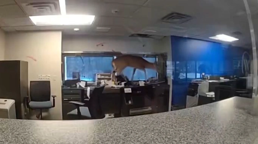 Στα πλάνα από κάμερα σώματος φαίνεται το ζώο να αντιστέκεται, μέχρι που οι αστυνομικοί κατάφεραν να περάσουν ένα σκοινί γύρω από τα κέρατά του και να το οδηγήσουν έξω.