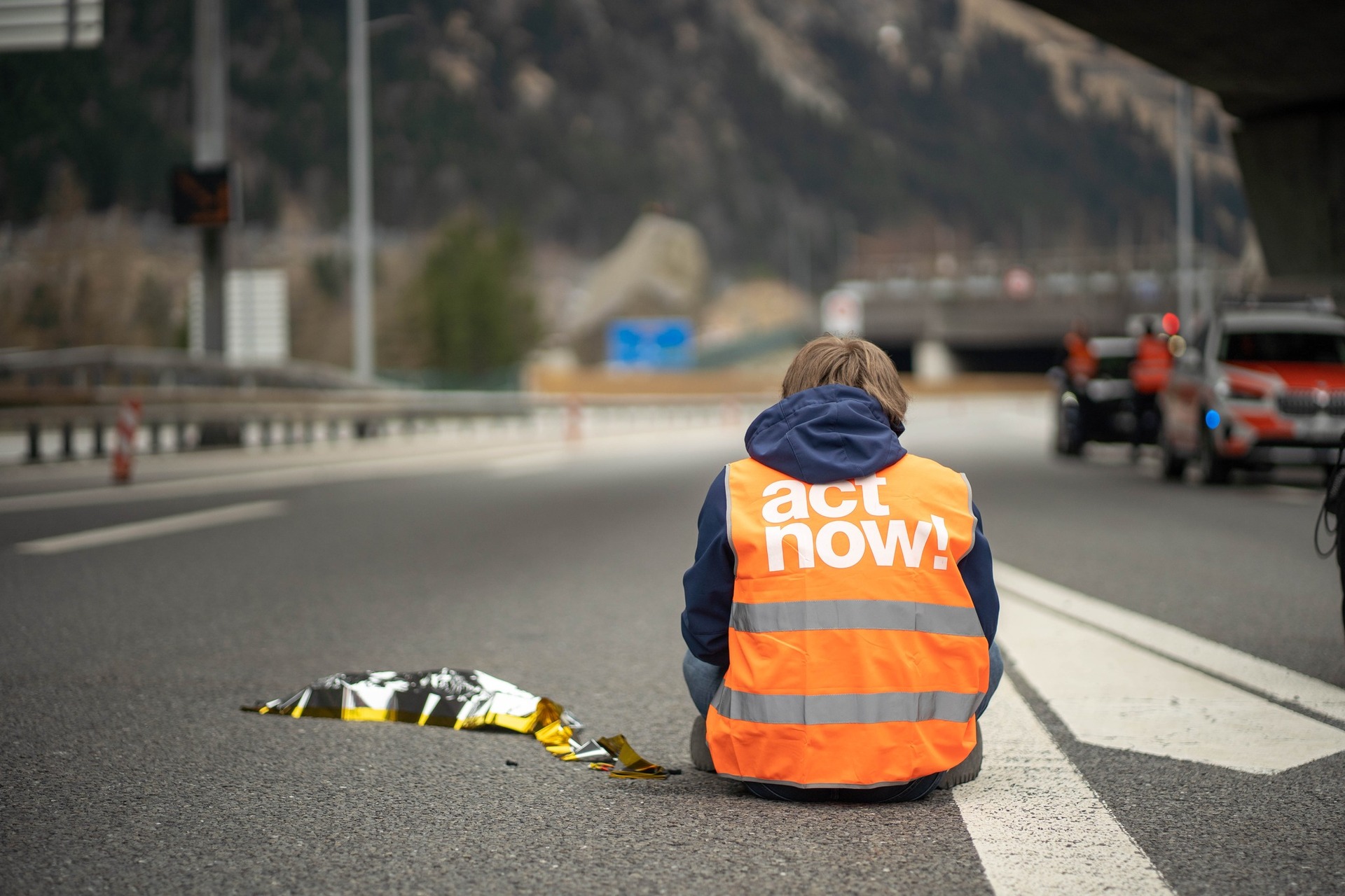 Διαδηλωτές από την οργάνωση Renovate Switzerland κόλλησαν χρησιμοποιώντας κόλλα στο οδόστρωμα γύρω από τη βόρεια είσοδο της σήραγγας Γκόταρντ, όπως ανακοίνωσε η οργάνωση.