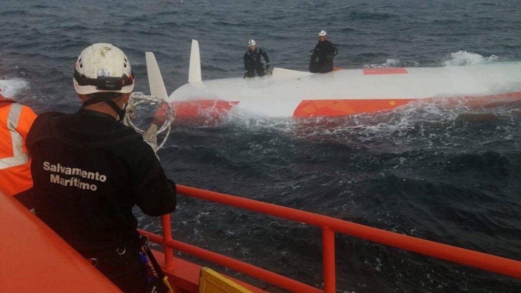 Η ισπανική ακτοφυλακή βρήκε το αναποδογυρισμένο σκάφος, αλλά η θάλασσα ήταν πολύ άγρια για να τον διασώσει – έτσι ο ναυτικός έπρεπε να περιμένει μέχρι το πρωί.