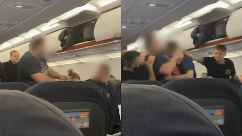 Βίντεο που κυκλοφορούν στα social media καταγράφουν τη διαμάχη, όπου ένας επιβάτης ήρθε στα χέρια με έναν νεότερο άντρα για το ότι φέρεται να έριξε τσιπς και άλλα σνακ γύρω από την θέση του.
