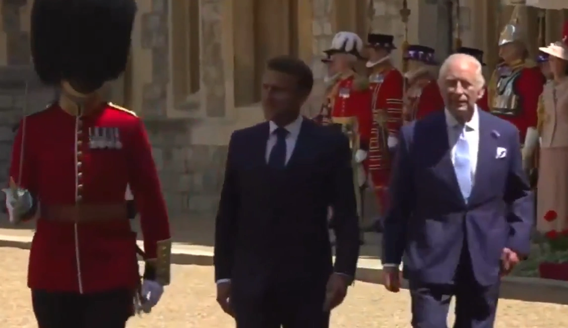 WEF Deep State Shill Emmanuel Macron deliberately disrespects King Charles by marching in front of him earlier today.