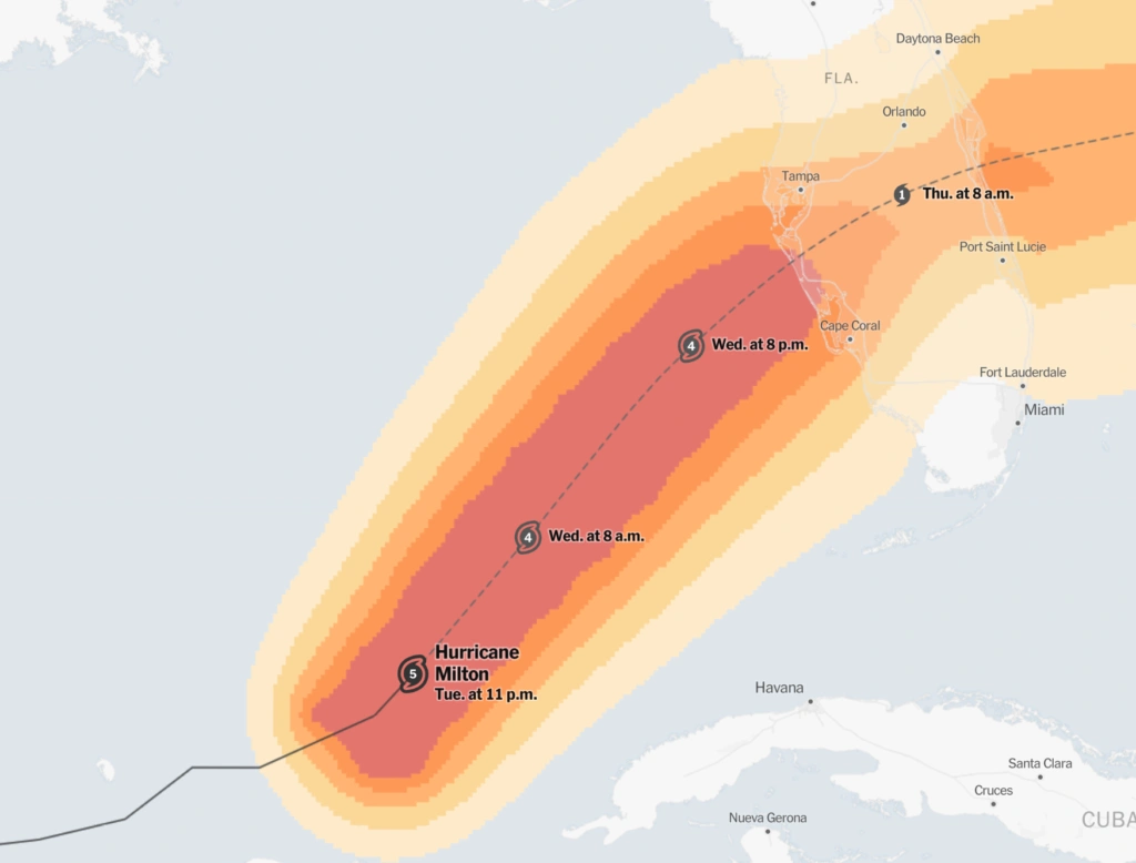 «Εάν ο Μίλτον παραμείνει στην πορεία του, αυτός θα είναι ο πιο ισχυρός τυφώνας που πλήττει τον κόλπο της Τάμπα τα τελευταία 100 χρόνια», προειδοποίησε η Εθνική Μετεωρολογική Υπηρεσία.