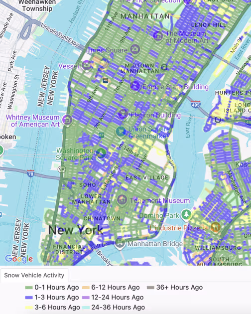 Οι Νεοϋορκέζοι μπορούν να ελέγξουν πόσο πρόσφατα έχει χιονίσει ο δρόμος τους με έναν διαδραστικό χάρτη που κατασκευάστηκε από το Τμήμα Υγιεινής της πόλης.