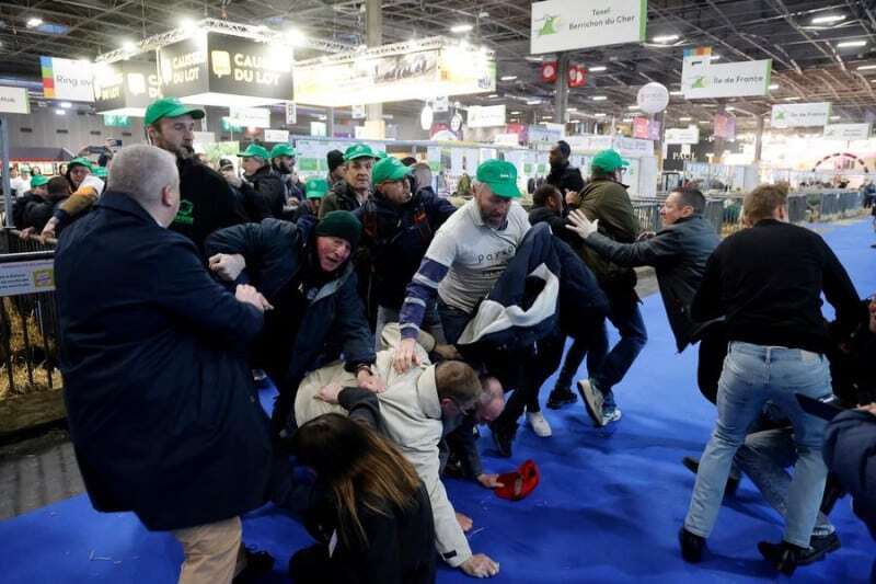 Angry French Farmers storm into Paris agriculture fair ahead of Macron visit