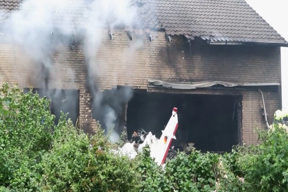 Σύμφωνα με την Rheinische Post, το αεροπλάνο προσέκρουσε στην πρόσοψη κτηρίου και στη συνέχεια συνετρίβη στην αυλή, η οποία τυλίχθηκε στις φλόγες.