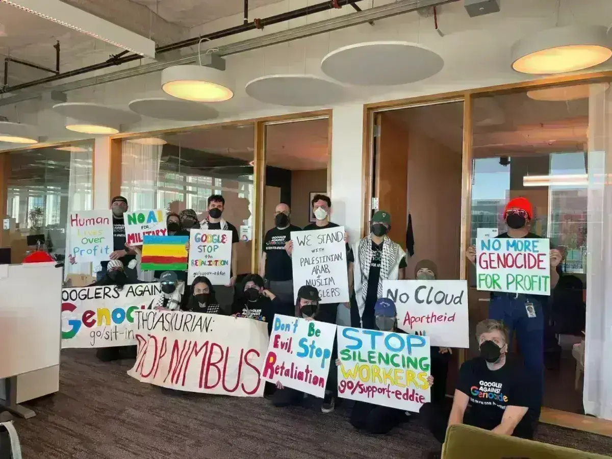 Στη Νέα Υόρκη, διαδηλωτές είχαν καταλάβει τον 10ο όροφο των γραφείων της Google στο τμήμα Chelsea του Μανχάταν, ως μέρος μιας διαμαρτυρίας που επεκτάθηκε και στα γραφεία της εταιρείας στο Σιάτλ για αυτό που αποκαλούσε «No Tech for Genocide Day of Action».