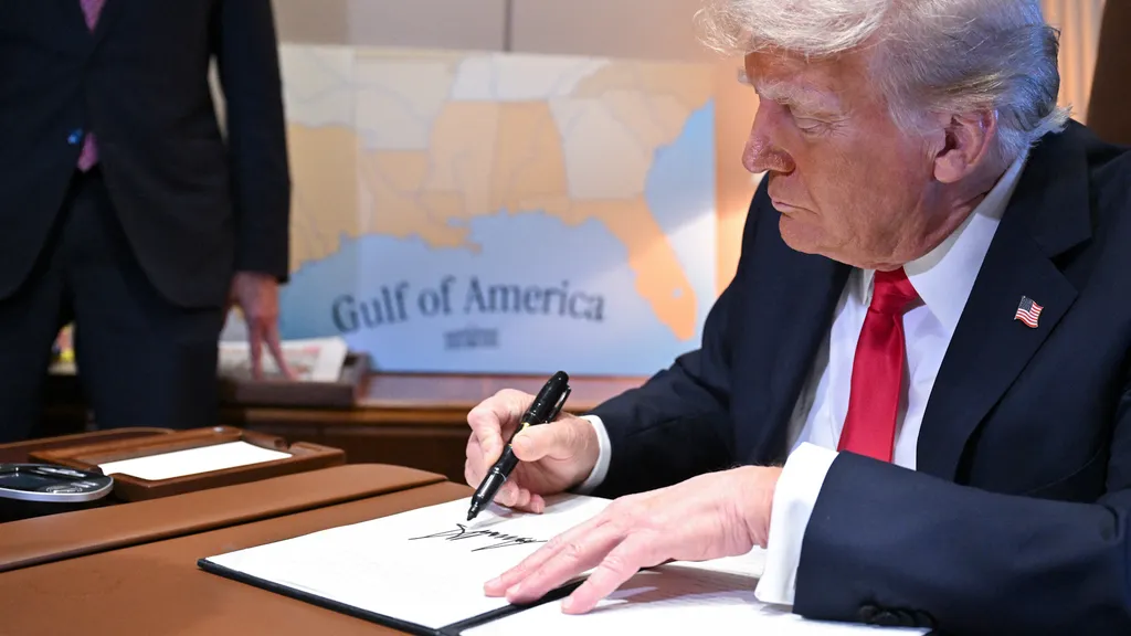«ΚΟΛΠΟΣ ΤΗΣ ΑΜΕΡΙΚΗΣ», έγραψε ενθουσιασμένος ο Τραμπ στο Truth Social συνοδεύοντας την ανάρτησή του με ένα screenshot από τον χάρτη του Google Maps και ένα link που οδηγεί στην ανακοίνωση που έκανε την Κυριακή με την οποία όρισε την 9η Φεβρουαρίου «ημέρα του Κόλπου της Αμερικής».
