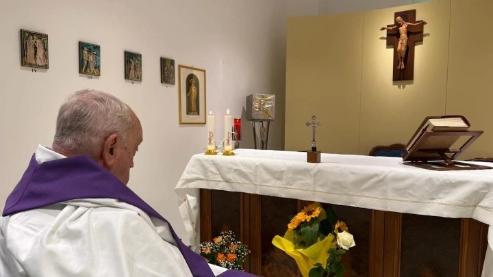 Είναι η πρώτη φωτογραφία του ποντίφικα που δίδεται στα μέσα ενημέρωσης, από τότε που βρίσκεται στο νοσοκομείο, λόγω διπλής πνευμονίας.
