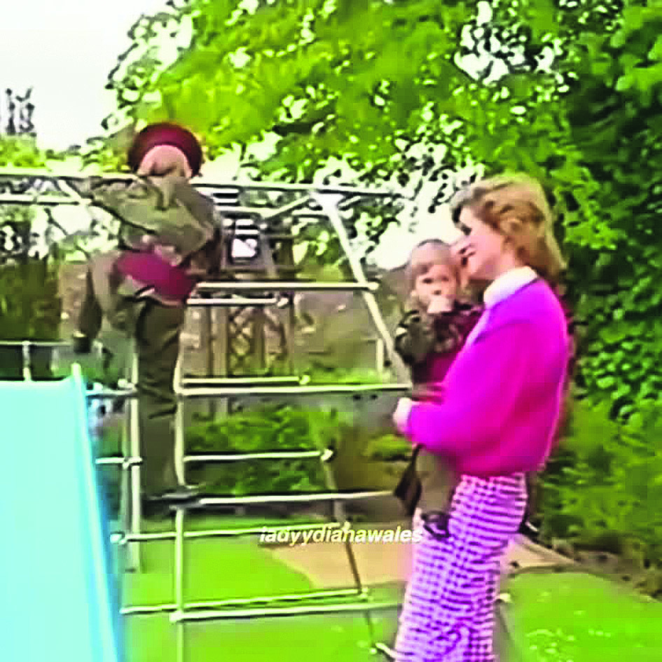 Οπως αναφέρει η βρετανική εφημερίδα «Daily Mail», η Νταϊάνα ακούγεται να λέει στον 4χρονο τότε πρίγκιπα Ουίλιαμ, που είχε βουρκώσει και δεν ήθελε να βγει από την κρυψώνα του, ότι «ο αδελφός του θα έχει όλη τη διασκέδαση», σε μια προσπάθεια να τον παρακινήσει να παίξει με τον δίχρονο αδελφό του, Χάρι, τον οποίο κρατάει στην αγκαλιά της. Σε άλλο σημείο του βίντεο, τα δύο παιδιά, που φορούν στρατιωτικές στολές, κάνουν τσουλήθρα και κούνια.