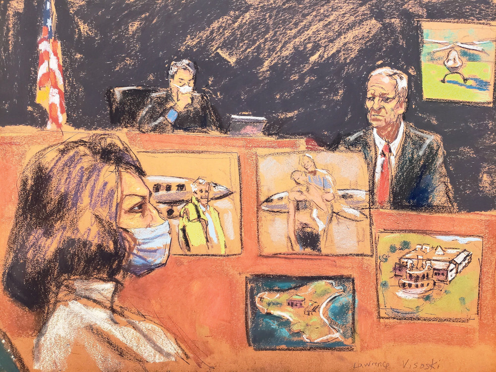 Η Μάξγουελ μετέφερε στην άλλη πλευρά του Ατλαντικού την ξέφρενη ζωή της. Ήταν εκείνη, σύμφωνα με μαρτυρίες, που έφερε τον Έπσταϊν σε επαφή με πλούσιους και διάσημους. Για τη δίκη της στηρίζεται σε μια ομάδα συνηγόρων, γνωστών στις ΗΠΑ: έναν πρώην εισαγγελέα που συνέβαλε στην καταδίκη του βασιλιά των ναρκωτικών του καρτέλ Σιναλόα, του «Ελ Τσάπο», και έναν συνάδελφό του, που όταν ήταν εισαγγελέας είχε καταδικάσει τον εκτελεστή της Μαφίας, Τόμας Πιτέρα.
