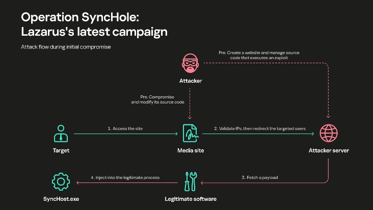 Σύμφωνα με νέα έκθεση της ομάδας GReAT (Παγκόσμια Ομάδα Έρευνας και Ανάλυσης) της Kaspersky, οι επιτιθέμενοι στοχοποίησαν τουλάχιστον έξι οργανισμούς στους τομείς του λογισμικού, της πληροφορικής, των χρηματοοικονομικών, των ημιαγωγών και των τηλεπικοινωνιών στη Νότια Κορέα. Ωστόσο, ο πραγματικός αριθμός των θυμάτων ενδέχεται να είναι μεγαλύτερος. Οι ερευνητές της Kaspersky ονόμασαν αυτή την εκστρατεία “Operation SyncHole”.