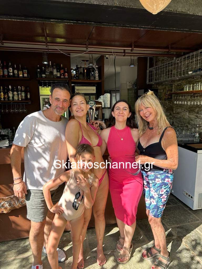 Σύμφωνα με το skiathoschannel, η οικογένεια Χάντσον επέλεξε να επισκεφθεί τη βόρεια πλευρά του νησιού, απολαμβάνοντας φαγητό και θάλασσα σε γνωστό beach bar restaurant στις Κεχριές για μπάνιο και φρέσκο ψάρι, μακριά από τα φώτα της δημοσιότητας.
