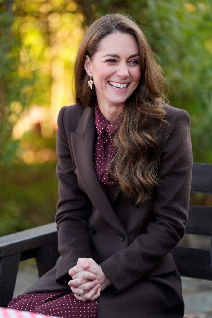 Η Κέιτ Μίντλετον επέλεξε ένα παλτό Alexander McQueen, σε καφέ απόχρωση, το οποίο απογείωσε με ένα μπορντό πουά φόρεμα. Η τρυφερή μητέρα και σύζυγος, που όπως όλα δείχνουν έχει αφήσει πίσω της την περιπέτεια με τον καρκίνο, αγαπά πολύ τα εν λόγω χρώματα αλλά και τον οίκο McQueen που τον προτιμά σε εκλεκτές περιστάσεις.
