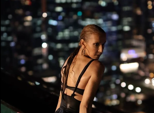 Η Σελίν Ντιόν εμφανίστηκε με ένα κομψό μαύρο ολόσωμο μαγιό, ποζάροντας μέσα σε πισίνα υπερχείλισης με φόντο τα φώτα της πόλης και τον νυχτερινό ουρανό. Με τα βρεγμένα της μαλλιά και την εντυπωσιακή ατμόσφαιρα, η τραγουδίστρια άφησε την εικόνα να μιλήσει από μόνη της.