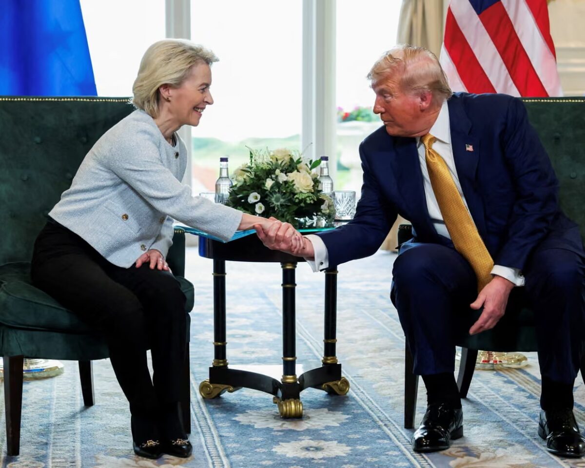Η φον ντερ Λάιεν χαρακτήρισε τη συμφωνία «τεράστια» που έφερε «σταθερότητα» και «προβλεψιμότητα», αποφεύγοντας την απειλή του Τραμπ για επιβολή δασμού 30%. Ωστόσο, αναλυτές υποστηρίζουν ότι η ΕΕ παρέδωσε πολύ περισσότερα από τις ΗΠΑ και ουσιαστικά υποτάχθηκε στον εκφοβισμό της Ουάσινγκτον.