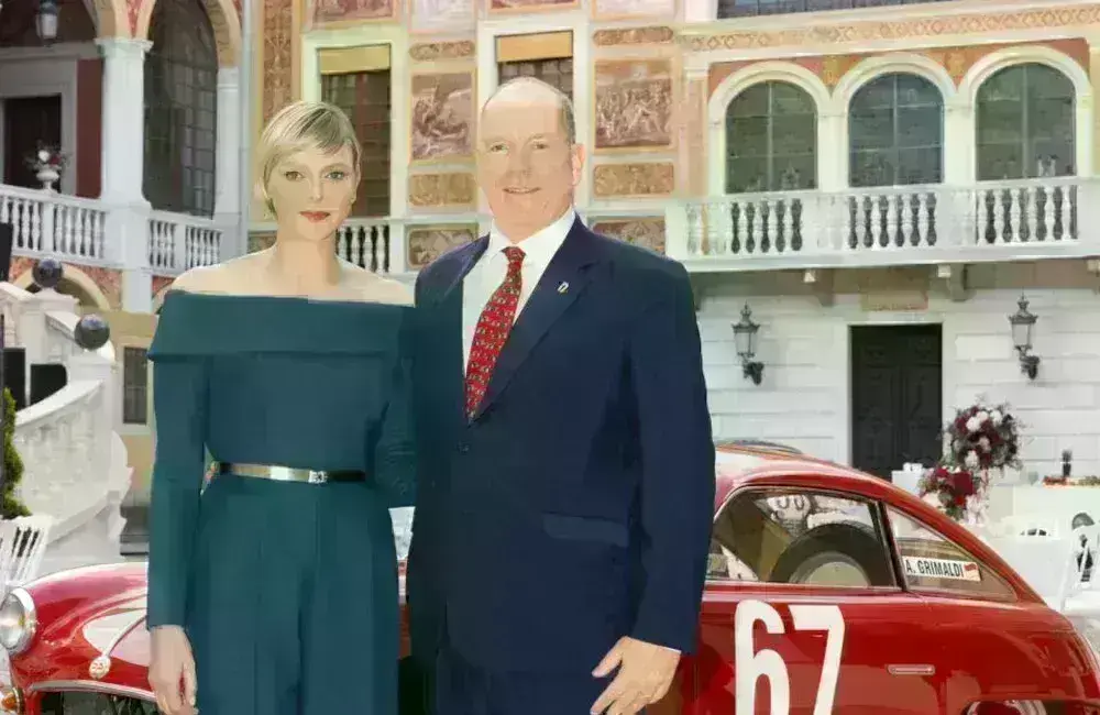 Η γεννημένη στη Ζιμπάμπουε royal, 46 ετών, φωτογραφήθηκε από τον Eric Mathon στο πλευρό του συζύγου της, πρίγκιπα Αλβέρτου, φορώντας μια εντυπωσιακή γαλαζοπράσινη φόρμα από τη Louis Vuitton.