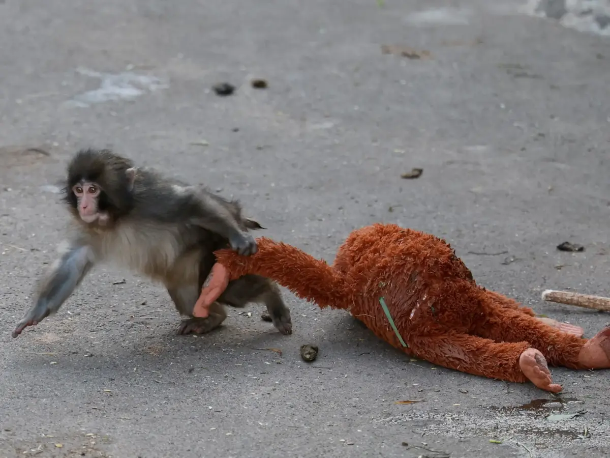 Οι φύλακες του ζωολογικού κήπου τον φρόντισαν και του έδωσαν την κούκλα για να τον βοηθήσουν να μάθει να κρατιέται, μια ικανότητα που χρειάζονται τα νεογέννητα μακάκια για να επιβιώσουν.