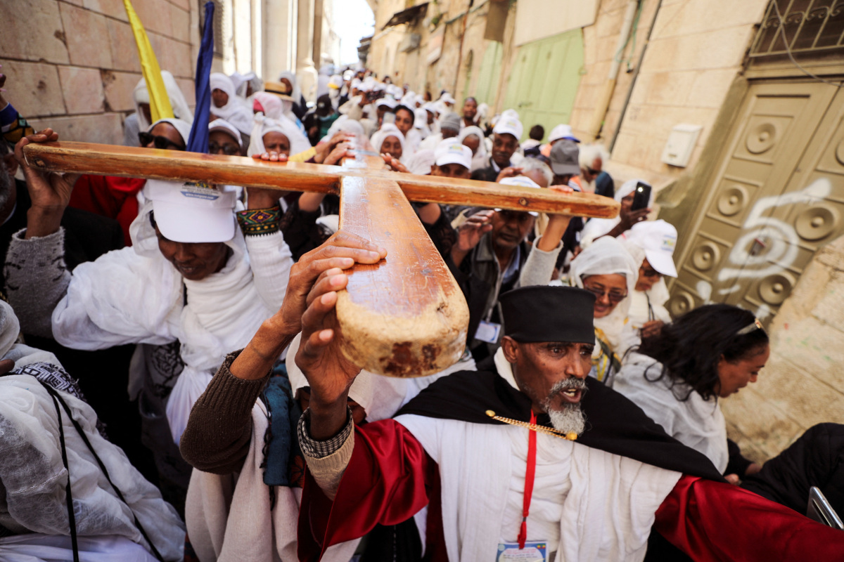 Οι πιστοί από όλο τον κόσμο βαδίζουν κατανυκτικά κατά μήκος της Via Dolorosa, του λιθόστρωτου μονοπατιού που διασχίζει την Παλιά Πόλη της Ιερουσαλήμ, όπου η παράδοση λέει ότι ο Ιησούς οδηγήθηκε στο Γολγοθά και τη Σταύρωση.