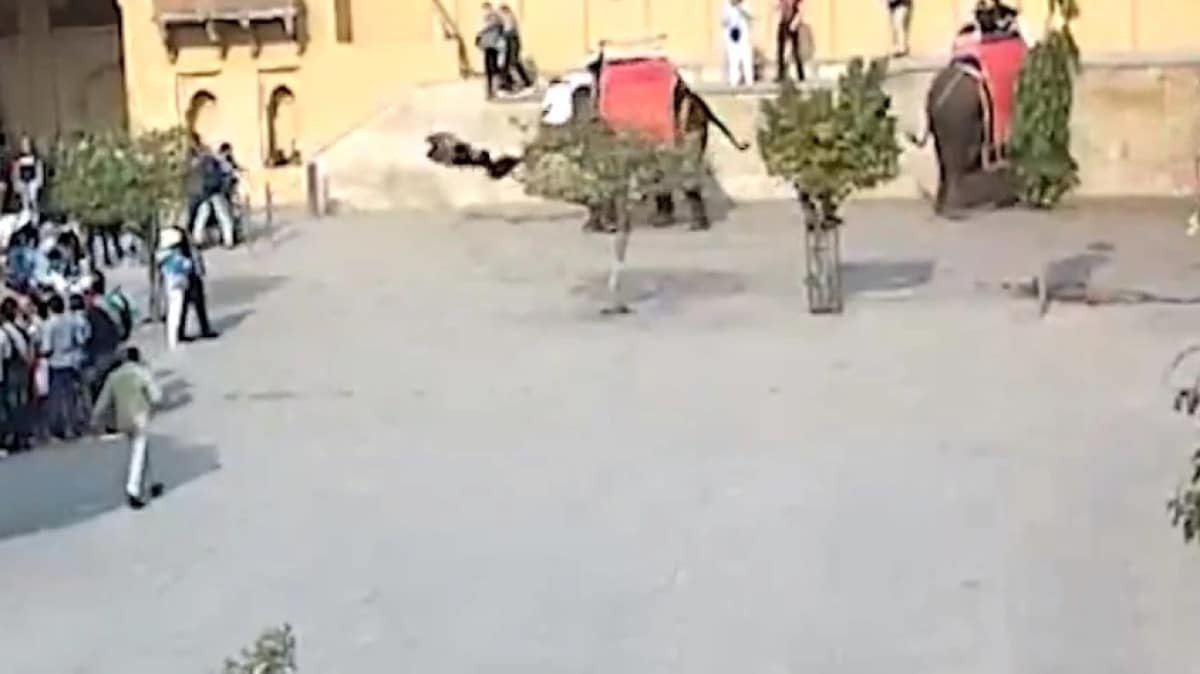 Jaipur: Elephant attacks tourist, incident captured in CCTV pic.twitter.com/vtViiZ0j3d