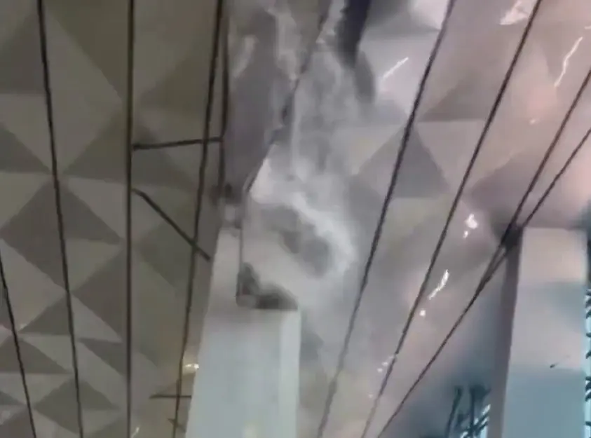 Βίντεο διάρκειας 17 δευτερολέπτων δείχνει αρχικά διαρροή νερού από την οροφή, που αυξάνεται έως ότου η οροφή καταρρεύσει σαν καταρράκτης, χτυπώντας τις εγκαταστάσεις της αίθουσας αναμονής.