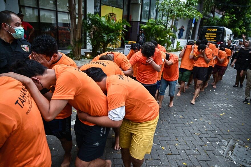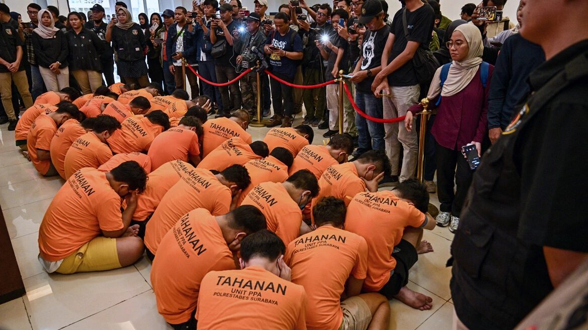 Οι συλληφθέντες οδηγήθηκαν δημοσίως με δεμένα χέρια και πορτοκαλί μπλούζες, ενώ προσπαθούσαν να καλύψουν τα πρόσωπά τους. Οι αρχές κατέσχεσαν κινητά και ηλεκτρονικές συσκευές.