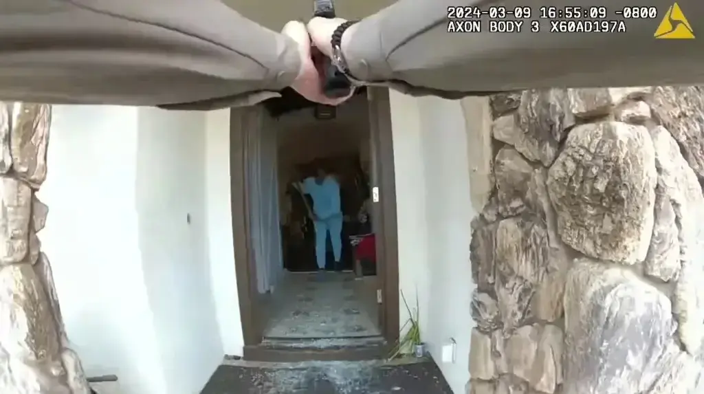 Το βίντεο από την κάμερα σώματος που έδωσε στη δημοσιότητα η υπηρεσία, δείχνει τον έφηβο, να βγαίνει από το σπίτι, ενώ κρατάει το εργαλείο και στα δύο χέρια και να ορμάει στον βοηθό που τον σημαδεύει με όπλο. «Έι, κάνε πίσω! Κάνε πίσω, αλλιώς θα σε πυροβολήσω!» φώναξε ο βοηθός σερίφης.