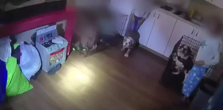 Οι αστυνομικοί εισέβαλαν αρχικά στο υπνοδωμάτιο. Εκεί βρήκαν 6 παιδιά – ηλικίας 2 έως 11 ετών – μόνα τους με δύο σκυλιά. Δύο από τα παιδιά, ένας 11χρονο αγόρι και ο 9χρονος αδελφός του, ήταν κλειδωμένα μέσα σε ένα κλουβί.