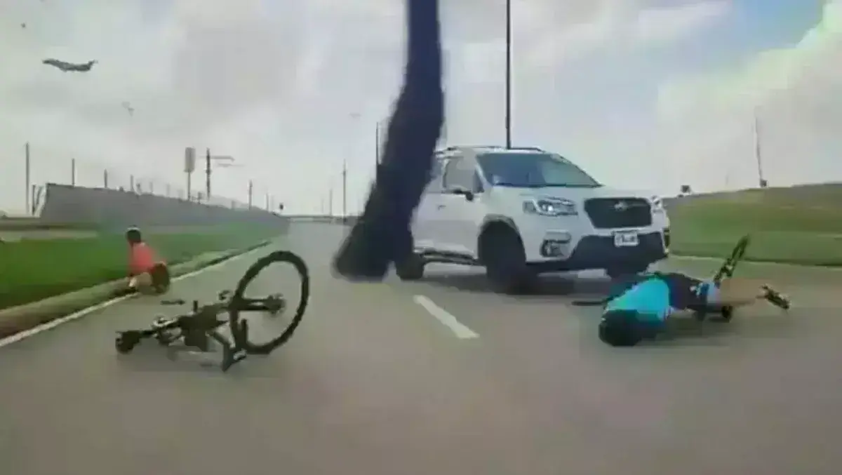 Οι δύο ποδηλάτες σωριάζονται στο οδόστρωμα κι ο ασυνείδητος οδηγός του SUV στρίβει αριστερά, προτού περάσει με το όχημα του πάνω από τον ένα ποδηλάτη και εξαφανιστεί.