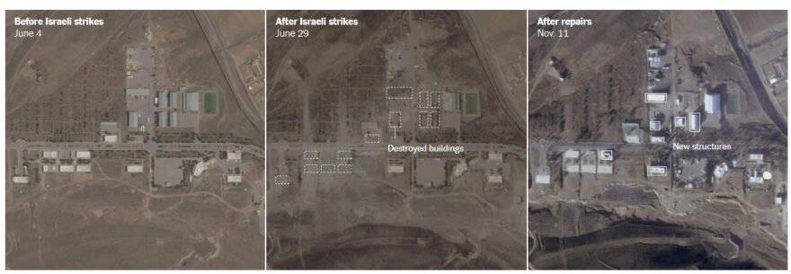 Η ανάλυση των New York Times βασίστηκε σε δορυφορικά δεδομένα από περίπου 24 τοποθεσίες που είχαν πληγεί τον Ιούνιο από επιθέσεις του Ισραήλ ή των Ηνωμένων Πολιτειών. Σε περισσότερες από τις μισές εντοπίστηκαν εργασίες επισκευής ή ανακατασκευής, κυρίως σε πυραυλικές εγκαταστάσεις. Οι ειδικοί σημειώνουν, ωστόσο, ότι τα δορυφορικά στιγμιότυπα αποτυπώνουν μόνο υπέργειες δραστηριότητες, αφήνοντας ασαφή την πλήρη έκταση των εργασιών.