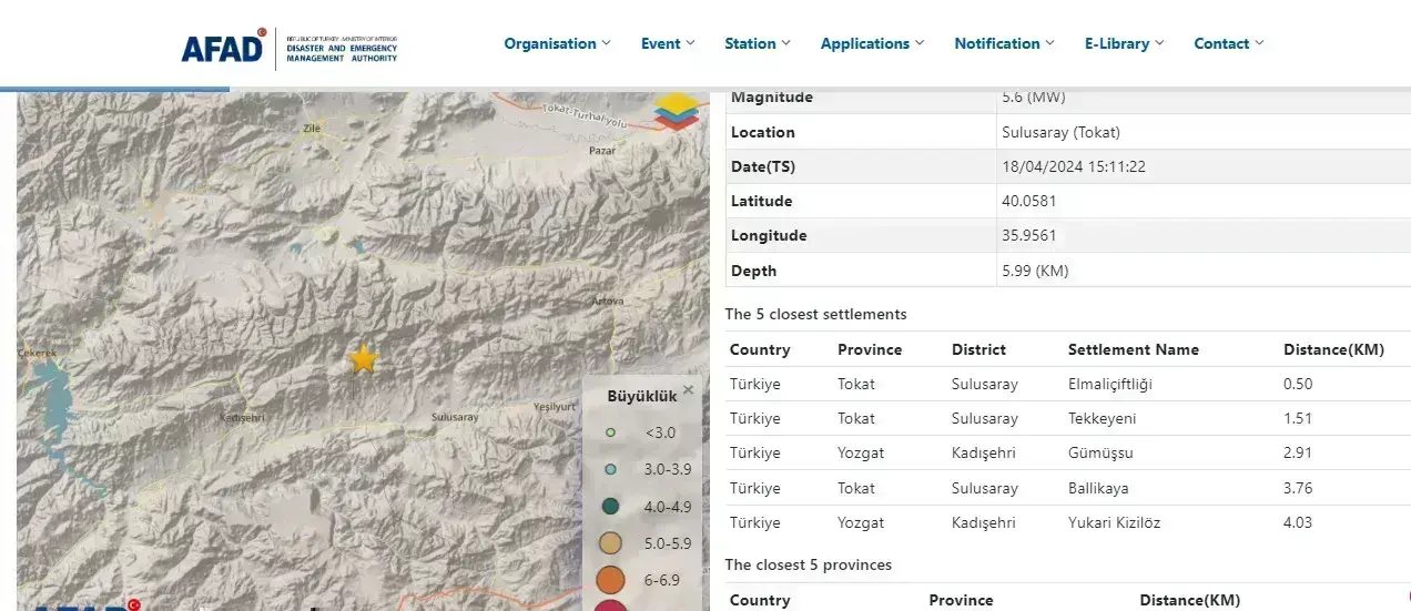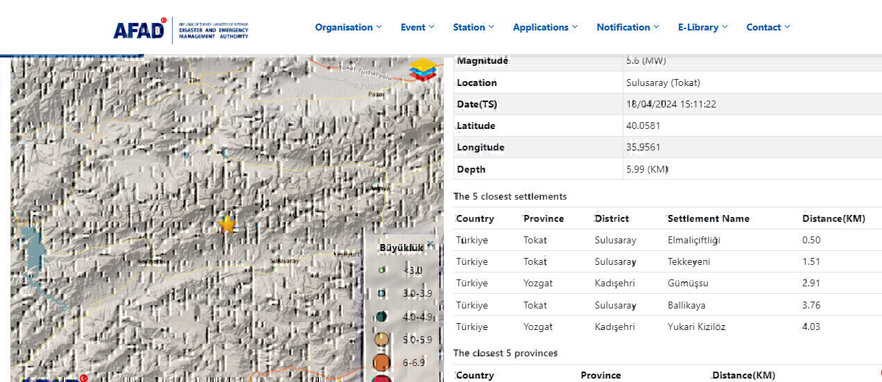 Ο σεισμός των 5,6 βαθμών της κλίμακας Ρίχτερ συγκλόνισε την περιοχή Τοκάτ στην Τουρκία και το εστιακό του βάθος είναι στα 6 χλμ. Από την Υπηρεσία Φυσικών Καταστροφών και Έκτακτων Καταστάσεων (AFAD) ανακοινώθηκε ότι συνεργεία έχουν ξεκινήσει επιτόπιες έρευνες για να ελέγξουν αν υπάρχουν ζημιές.