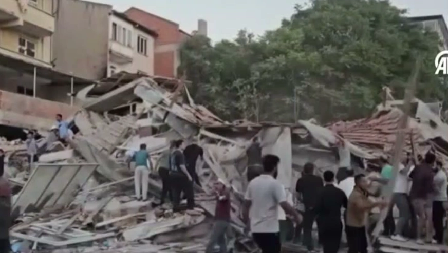 #Balıkesir #Sındırgı Çarşı Hükümet konağı yanında bulunan bina yıkıldı.