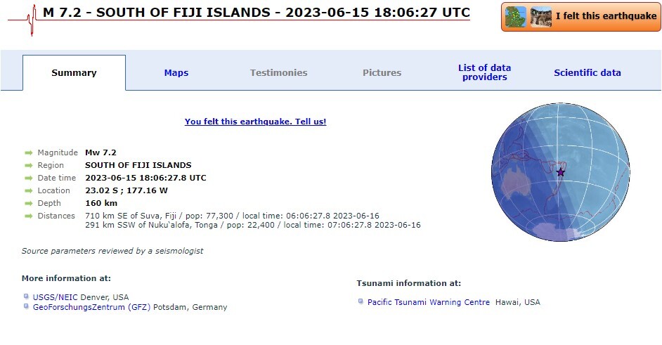 Ο σεισμός είχε εστιακό βάθος 160 χιλιομέτρων.