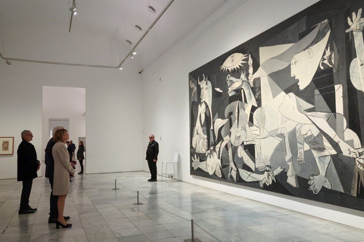 Το έργο, διαστάσεων 7,8 επί 3,5 μέτρων, που φιλοτεχνήθηκε σχεδόν αμέσως μετά τον βομβαρδισμό της βασκικής πόλης Γκερνίκα από τους Ναζί το 1937, διεκδικείται συχνά από τη Χώρα των Βάσκων.