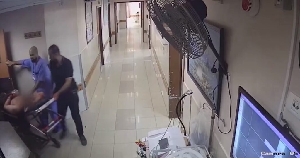 IDF releases surveillance camera footage from Shifa Hospital showing Hamas terrorists bringing a Nepali and Thai citizen who were abducted from Israel on October 7. pic.twitter.com/nmjlzkEdHw