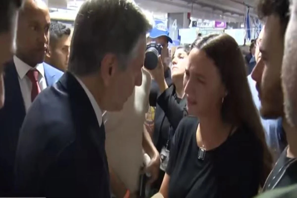 Η νεαρή με τον πατέρα της και φίλους της πλησίασε τον υπουργό Εξωτερικών για να συνομιλήσει μαζί του. «Χάσαμε πολλούς από τους φίλους μας, στενούς φίλους, πολλούς συγγενείς. Υπάρχουν πολλοί άνθρωποι που γνωρίζουμε που έχουν απαχθεί και βρίσκονται στην Γάζα», είπε η 24χρονη.
