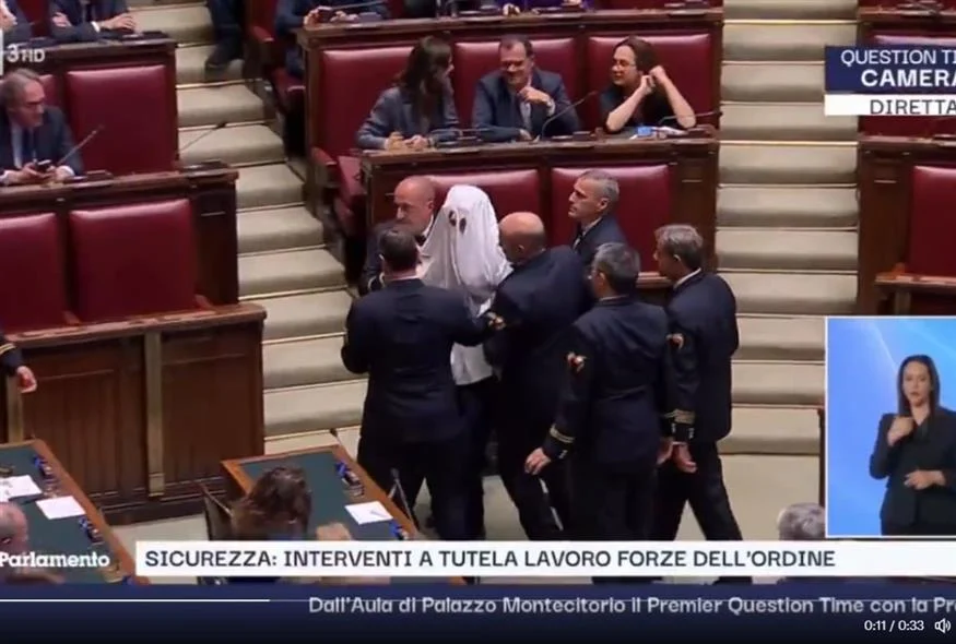 Ο βουλευτής Ρικάρντο Μάτζι προχώρησε σε μια συμβολική κίνηση διαμαρτυρίας καθώς φόρεσε ένα σεντόνι και ντύθηκε φάντασμα μέσα στο Κοινοβούλιο, και άρχισε να φωνάζει σχετικά με το δημοψήφισμα το οποίο θα λάβει χώρα στην Ιταλία στις 8 και 9 Ιουνίου για την εργασία και για την υπηκοότητα των αλλοδαπών.