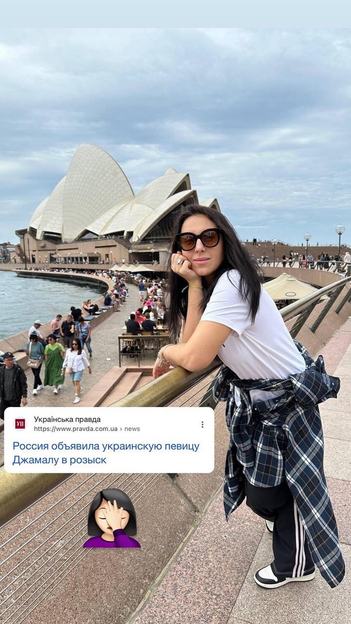 Η Jamala, η οποία βρίσκεται αυτή τη στιγμή σε περιοδεία συγκέντρωσης χρημάτων και ευαισθητοποίησης στην Αυστραλία, αντέδρασε στην είδηση δημοσιεύοντας ένα Instagram story με την ίδια έξω από την Όπερα του Σίδνεϊ, με ένα facepalm emoji.